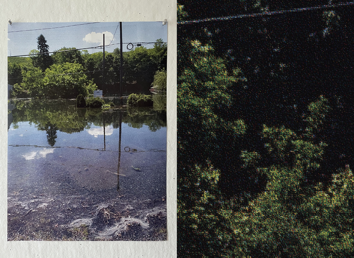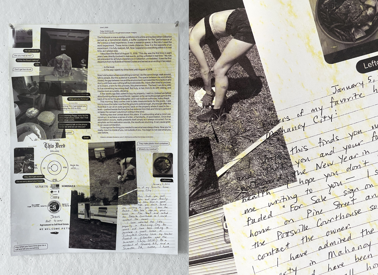 Roth's latest work commemorates and eulogizes the closure of her trailer/studio in Gilberton, PA. The artist purchased a small plot there in 2011 and in August 2021 she sold it, along with her trailer. In June 2020 mysterious waters rose from the ground beneath the trailer—a man-made disaster which simulated a natural one. The Flood honors collective grief, healing, and the potential catharsis made possible through the act of total acceptance.