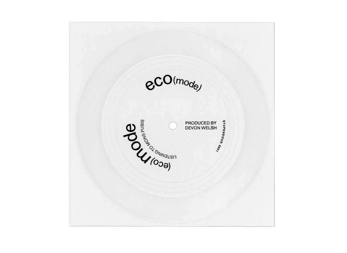 eco(mode) features Plummer reading a selection from Mons Pubis set on top of a spectral swirl of synthesizers, drum circles, and field recordings; produced by Devon Welsh.